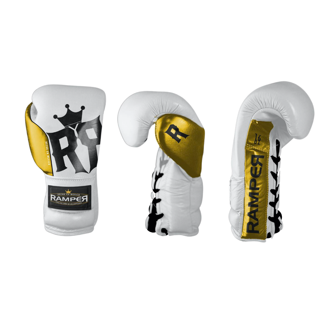 Guante de Box Modelo Gold White, RAMPER Entrenamiento, 100% Piel.